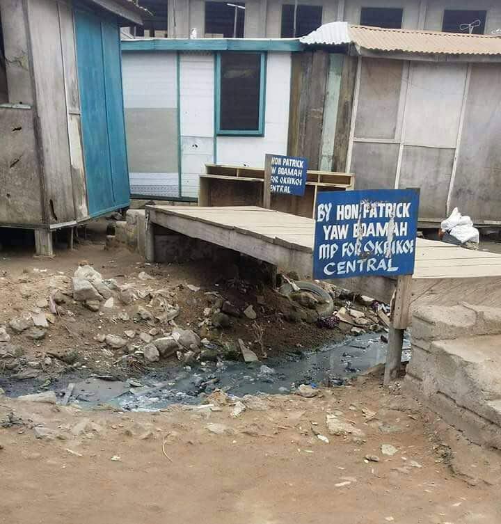 For instance, in the Okaikoi Central Constituency, the MP for the area, Honourable Patrick Yaw Boamah has constructed a wooden bridge over a small gutter, which makes one wonder the kind of thinking that went into his decision, when clearly what that community needs was a proper construction of gutter which could be covered to enable to people to walk over.